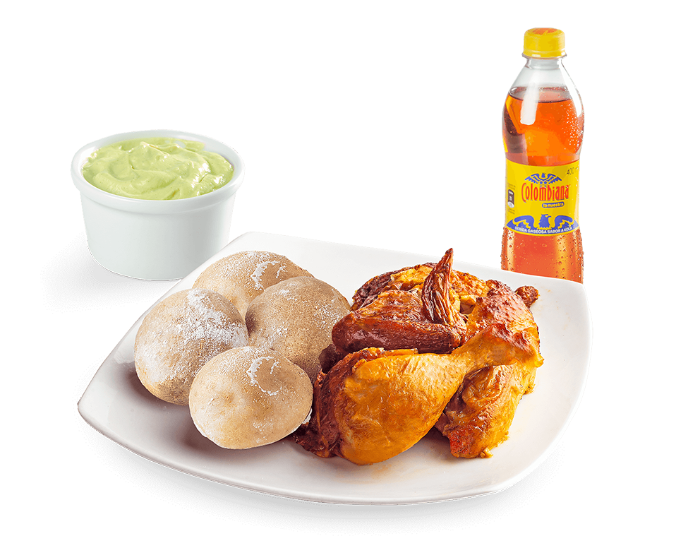 1/2 Pollo Asado + 4 Papas saladas + Guacamole + Bebida en Botella.