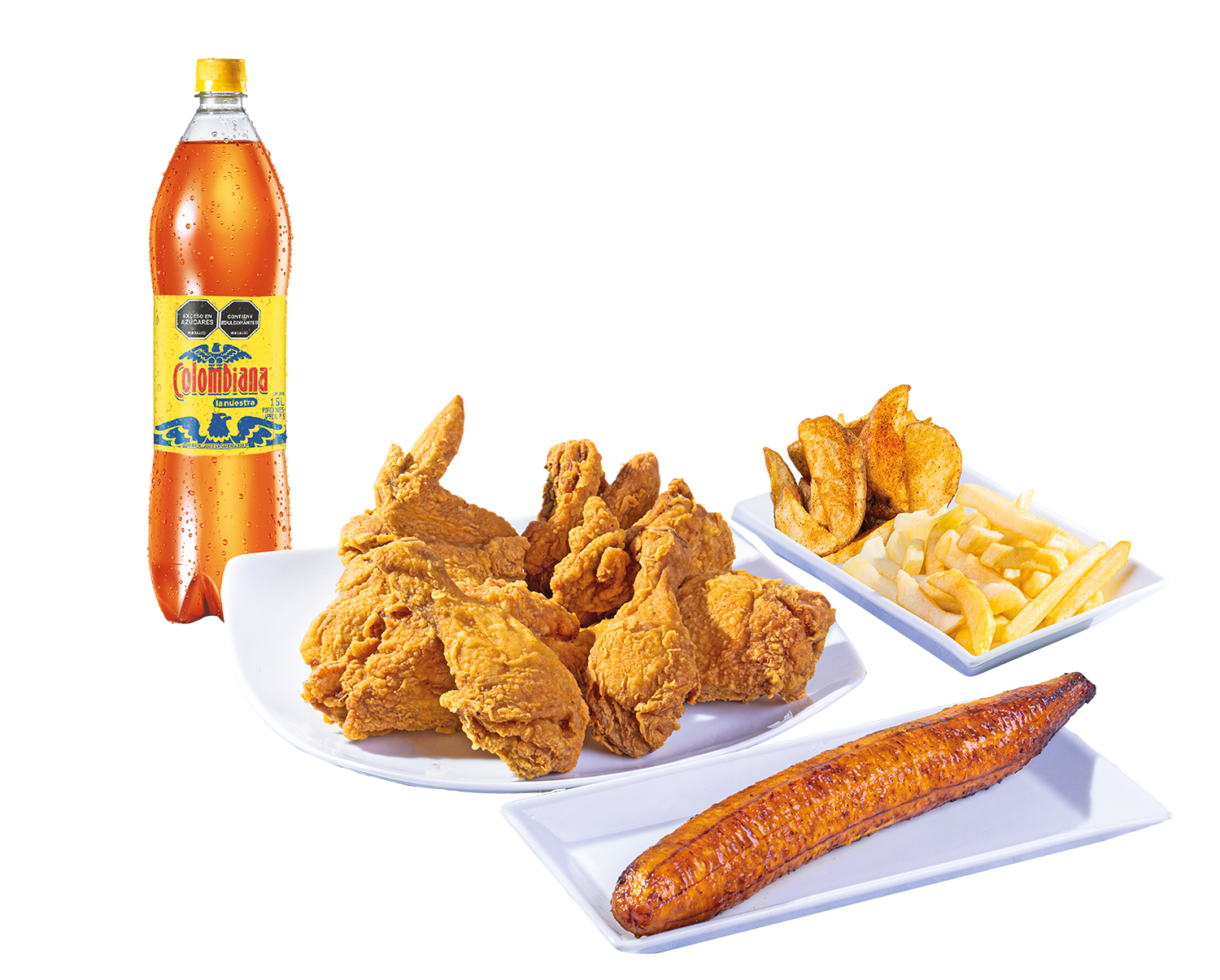 Pollo Apanado + Papa Artesanal + Francesa + Platano Maduro + Bebida 1,5 lts.
