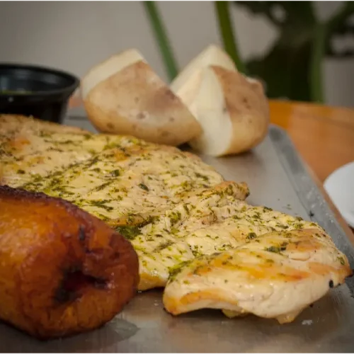Picada mixta con bondiola y chicharron, acompañado de papa y maduro