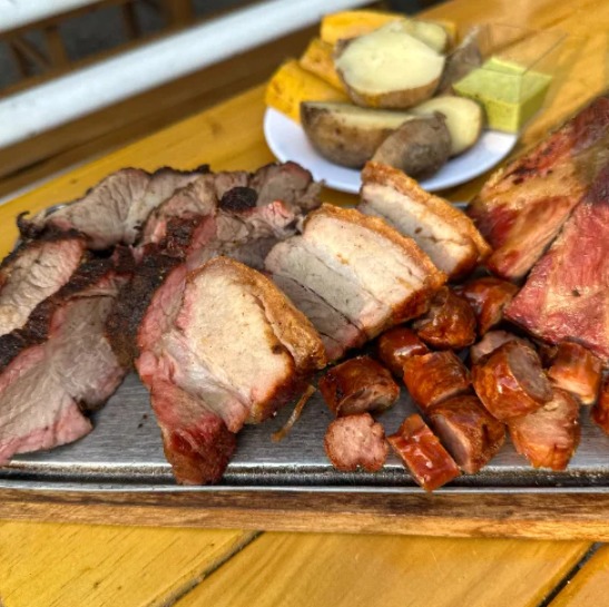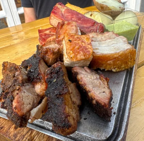Picada mixta con chicharron, bondiola, costilla y chorizo acompañada de papa y maduro