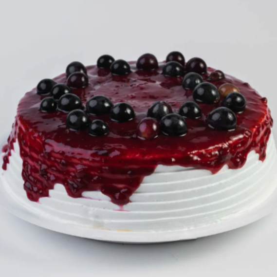 Delicioso Postres en molde redondo con base de bizcochuelo, Suave y cremoso con trozos de uva, mora, fresa y agras, 400 grs. Para 6 a 8 porciones.