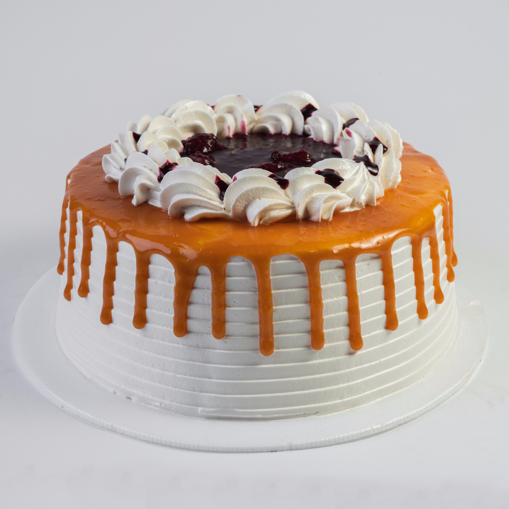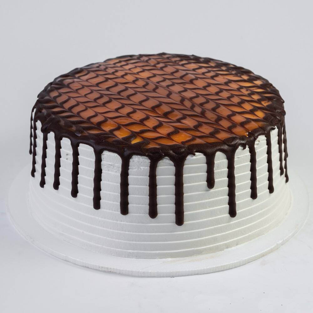 Torta blanca con doble relleno de delicioso caramelo de vainilla, 400 grs. Para 4 a 6 porciones.