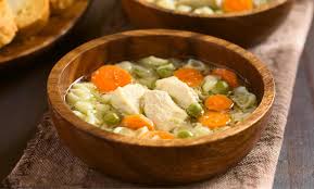 Caldo a base de pollo, con zanahoria, papa parda, habichuela, arverjas y zapallo.