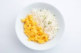 Arroz blanco, huevo perico en mantequillas.