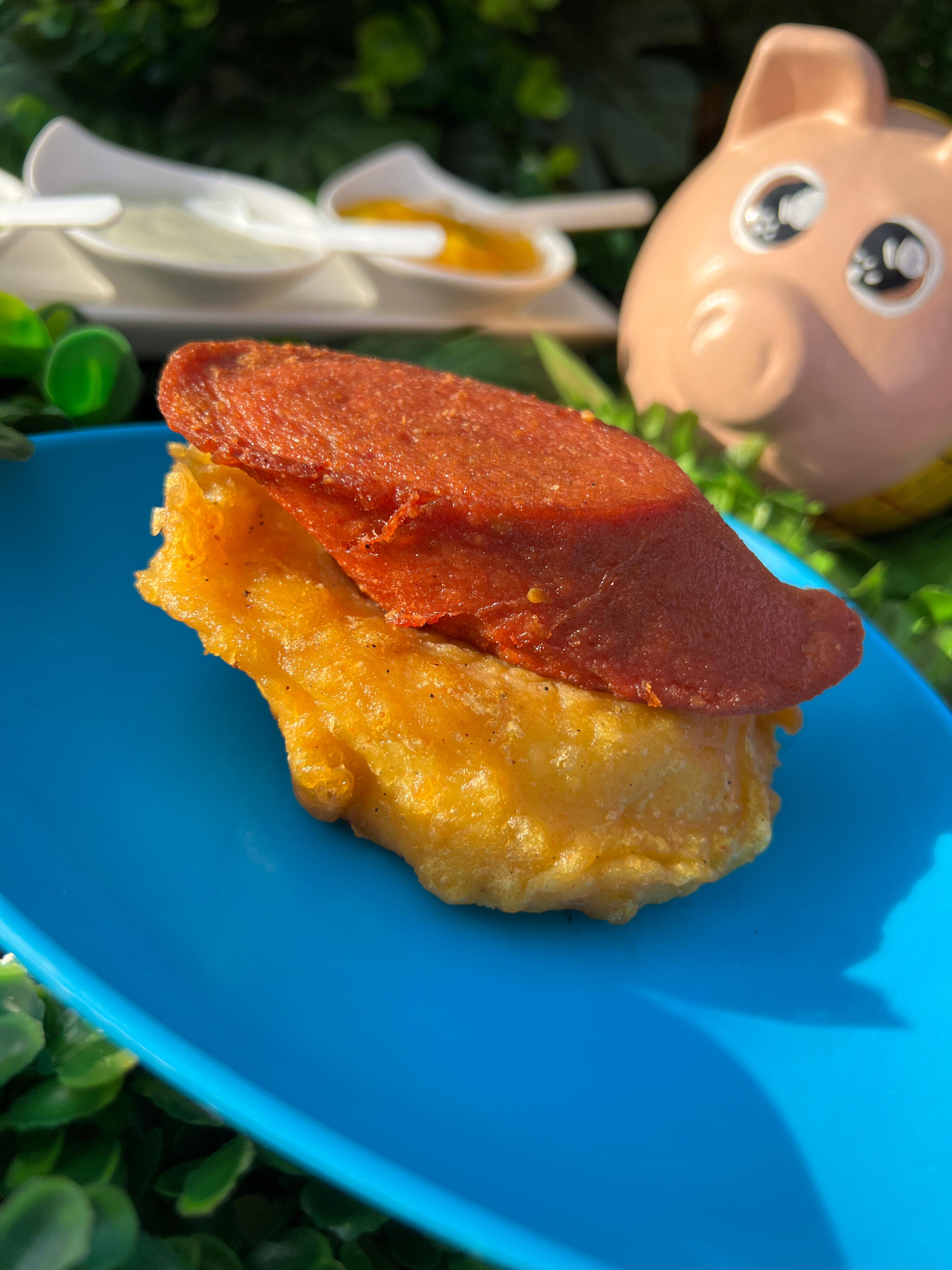 Papa Aborrajada con Salchichón