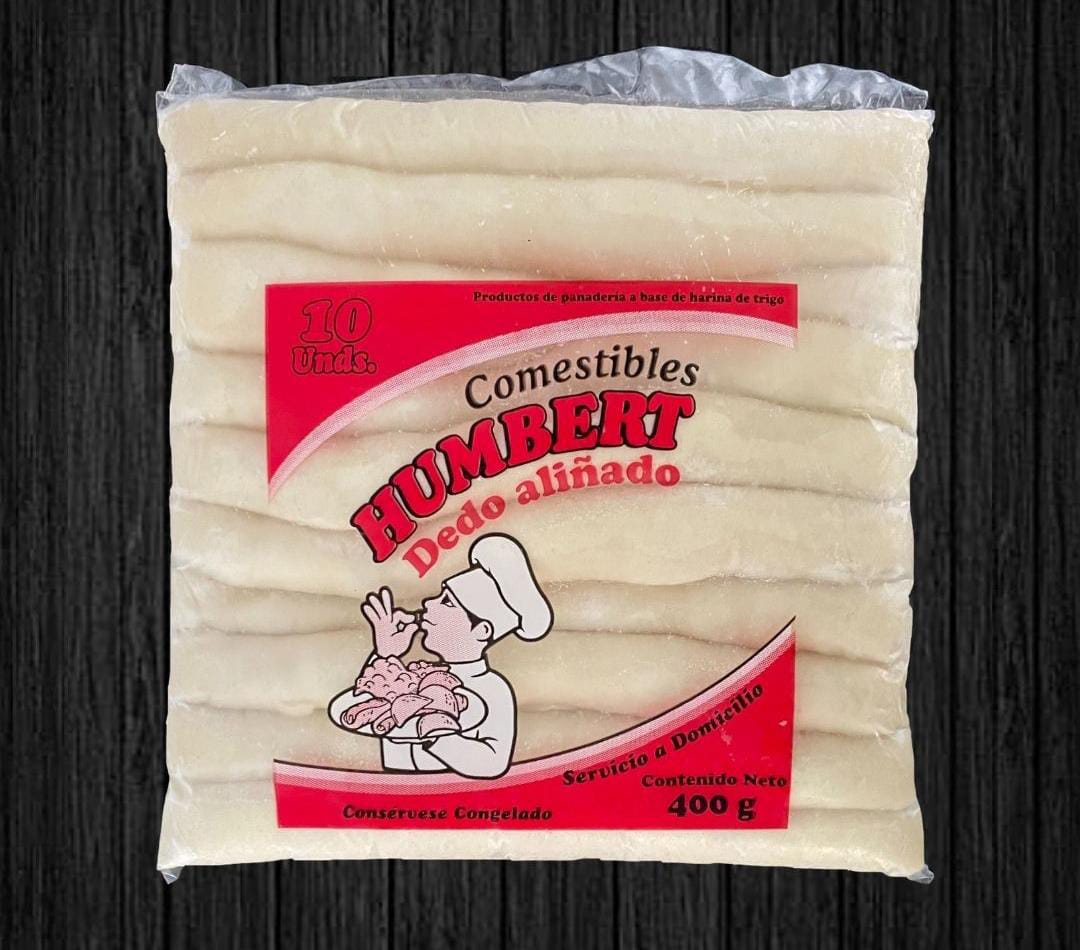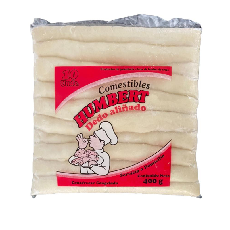 dedo aliñado x10und (no lleva relleno) // Preparación: dejar descongelar de 15 - 20min Freír en aceite a Fuego Bajo / Hornear a 250° / freidora de aire: 200° - 30-20min //. Se entrega congelado listo para freír.