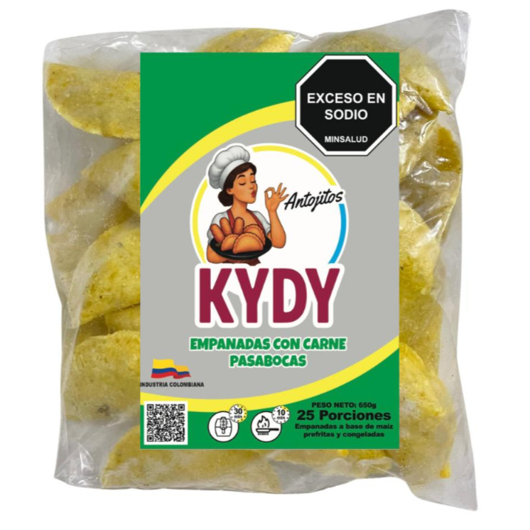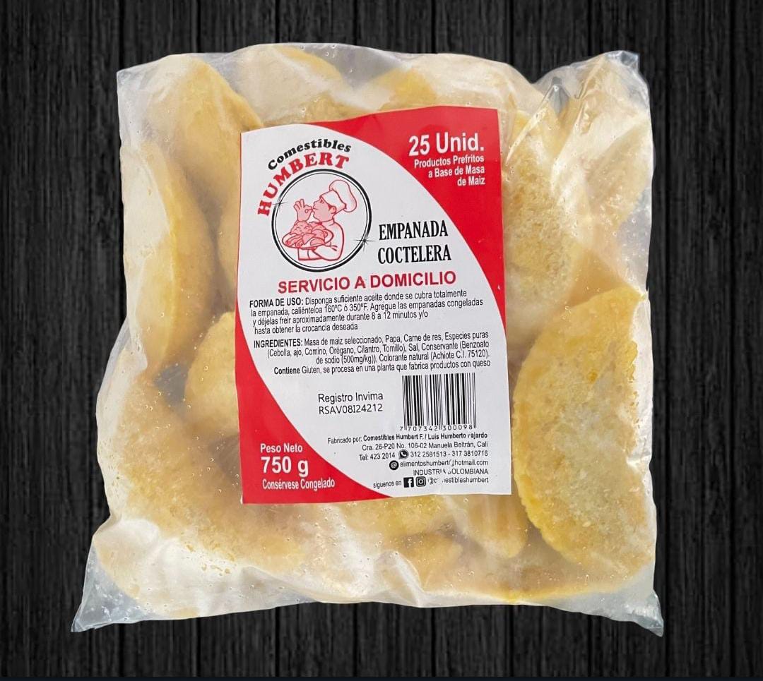 Empanada valluna Relleno de carne molida, papa capira y aliños // Preparación: Freír en aceite a Fuego alto (No saturar el aceite) / freidora de aire: 180° - 15-20min// Se entrega congelado listo para freír