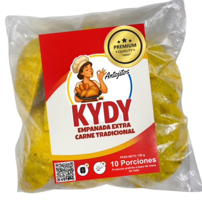 Empanada valluna premium, relleno de extra carne desmechada, papa amarilla y aliños // Preparación: Freír en aceite a fuego alto / freidora de aire: 160° - 15-20min //. Se entrega congelado listo para freír.