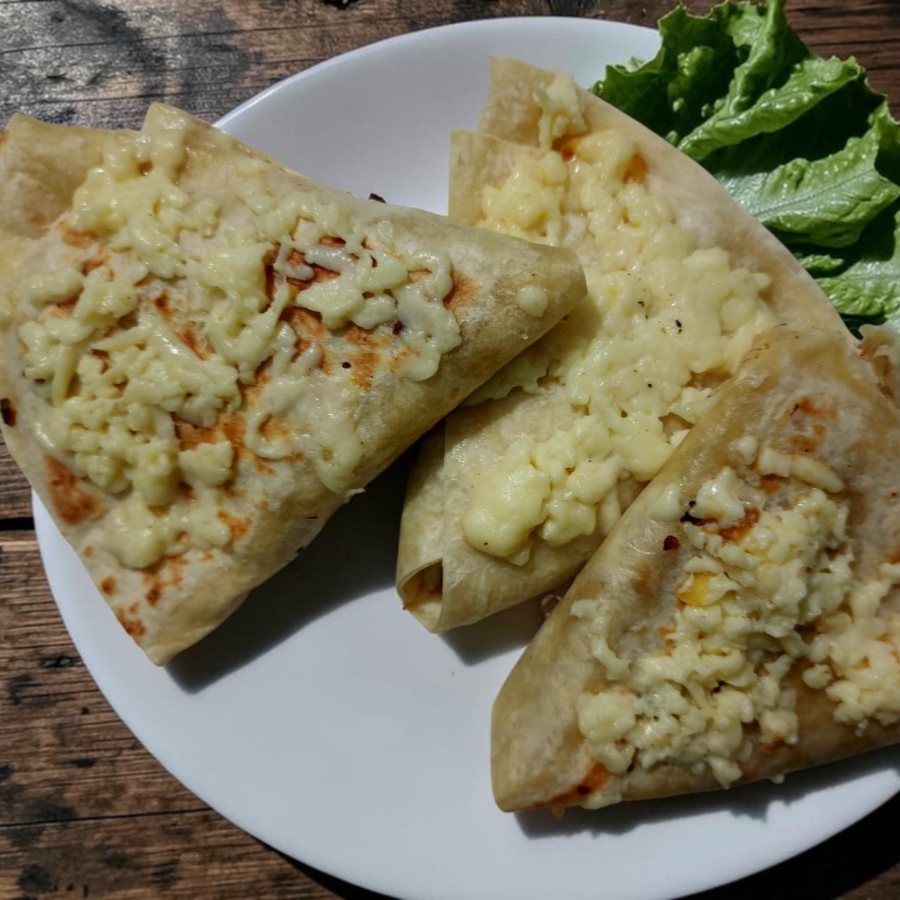 Tortillas Rellenas de pollo y guiso cubiertas con queso mozzarella x 3unidades