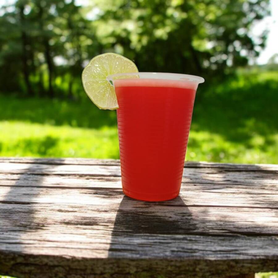 Jugo natural de maracuyá en agua, presentación en vaso de 16oz