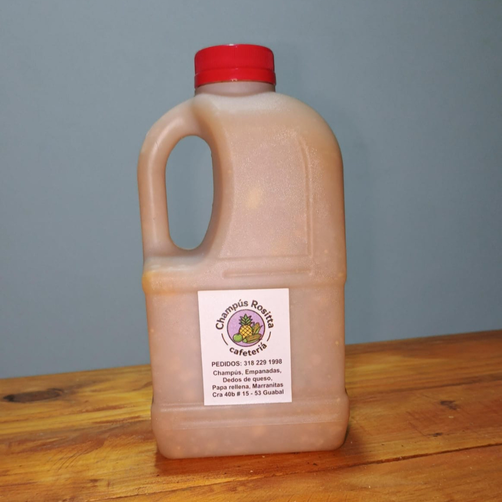 Un litro de delicioso champús Valluno (maíz, lulo, piña, melao de panela)