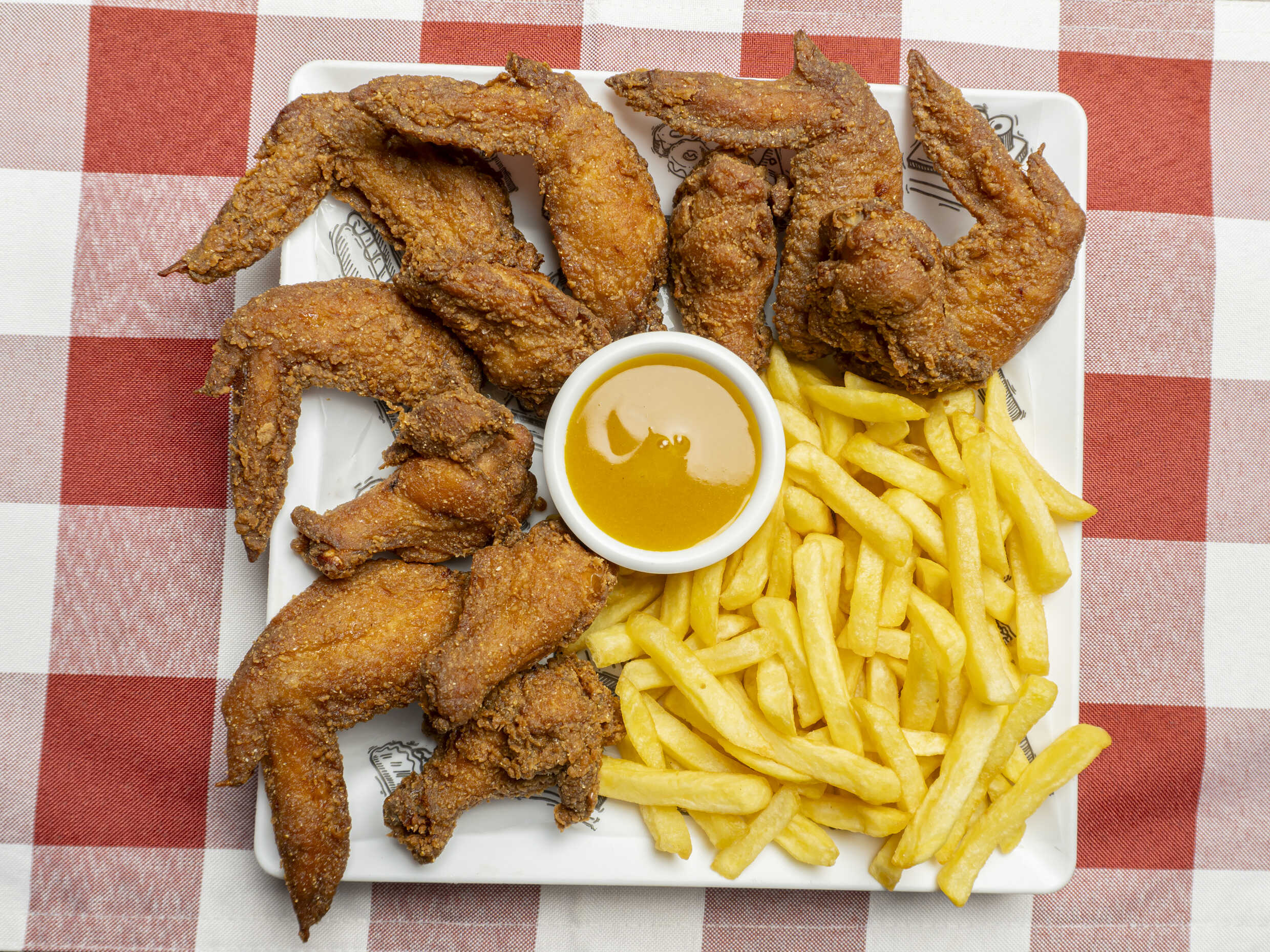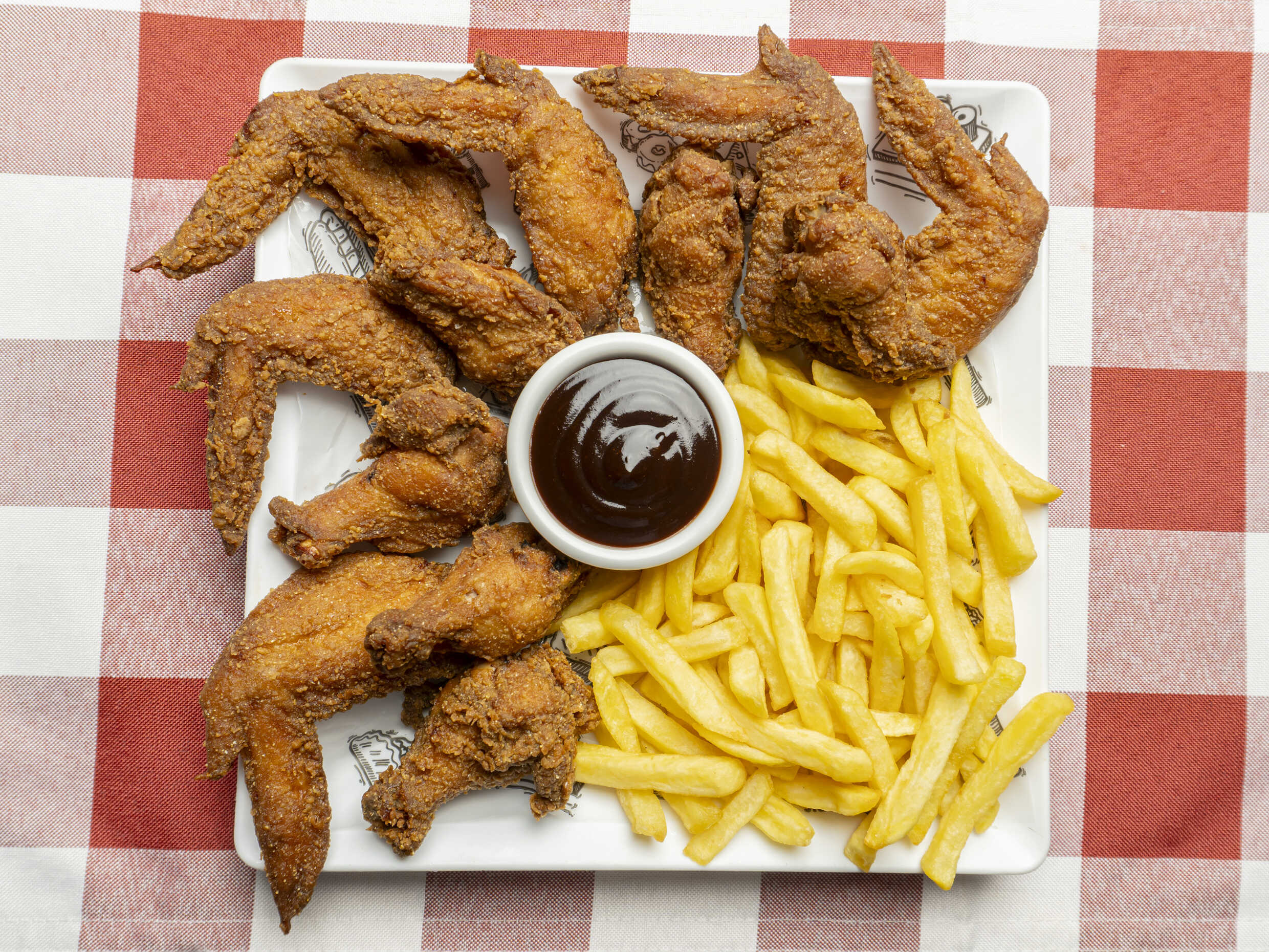 Deliciosas alipapas de la casa, con la receta tradicional. Viene con: papa criolla, 18 alitas en salsa BBQ o miel mostaza.