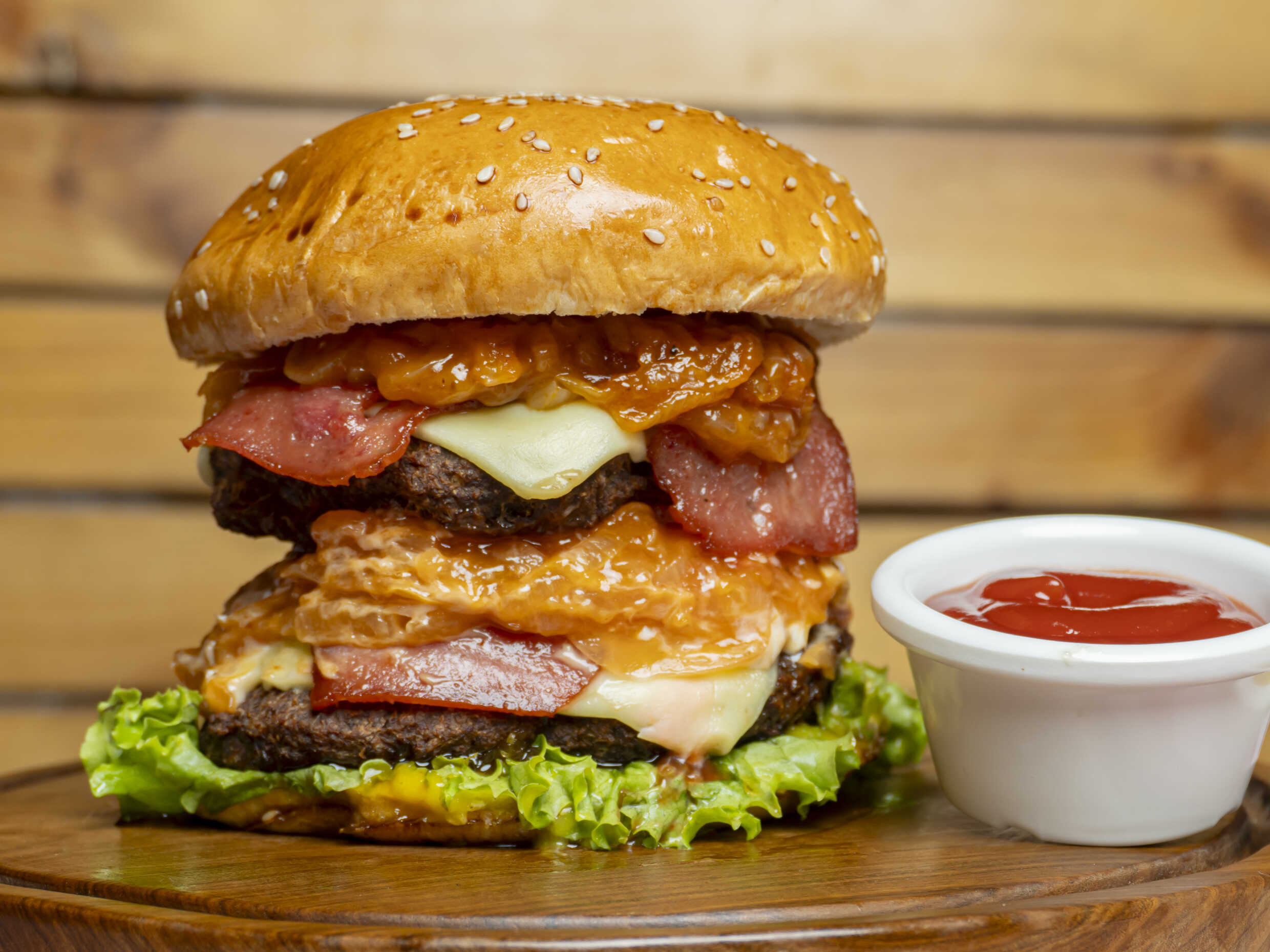 Deliciosa hamburguesa de la casa, con la receta tradicional. Viene con: doble carne, doble tocineta, queso, cebolla, lechuga, tomate y salsa de la casa.