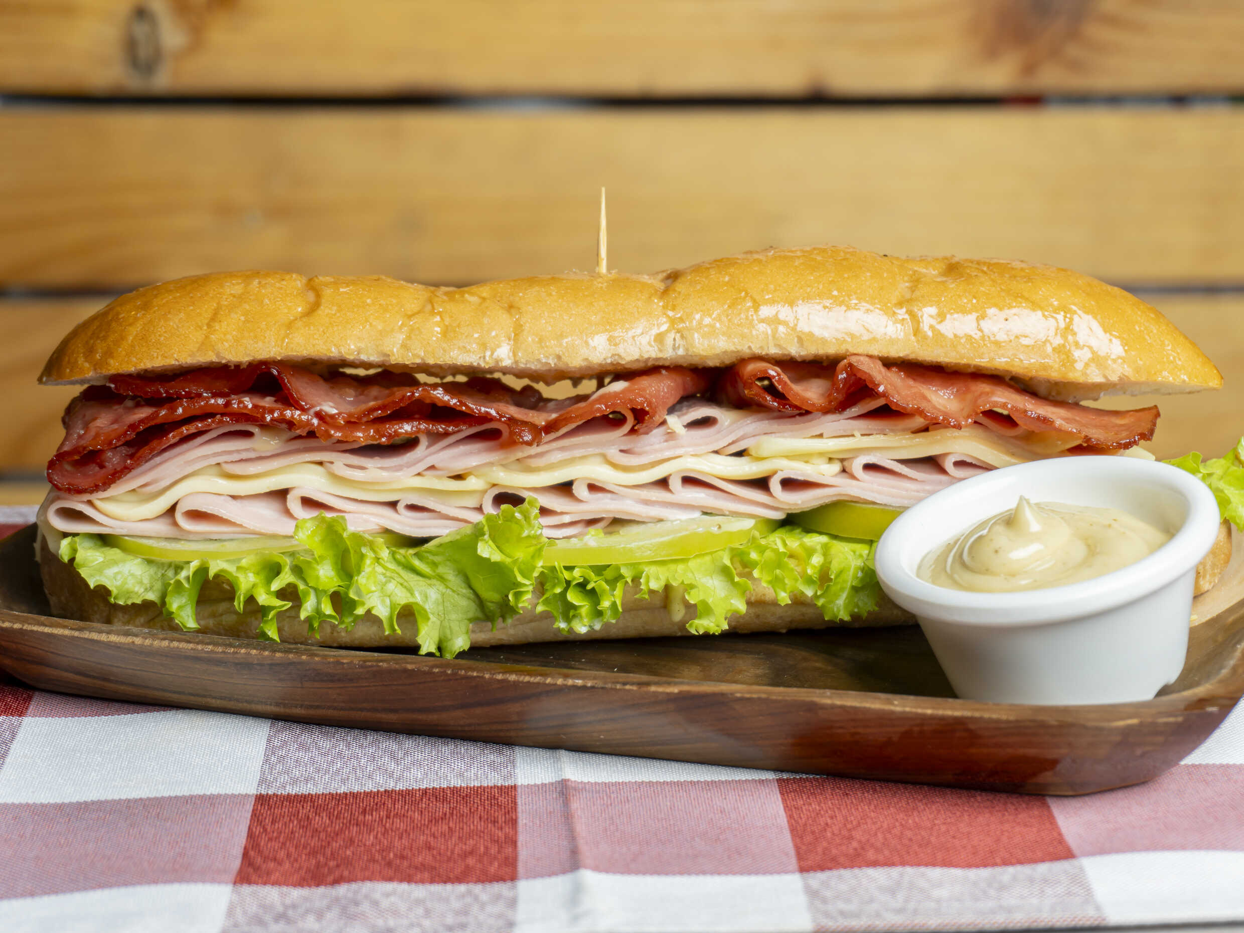 Delicioso sándwich de la casa, con la receta tradicional. Viene con: jamón, queso, tocineta, lechuga, tomate y salsa de ajo.