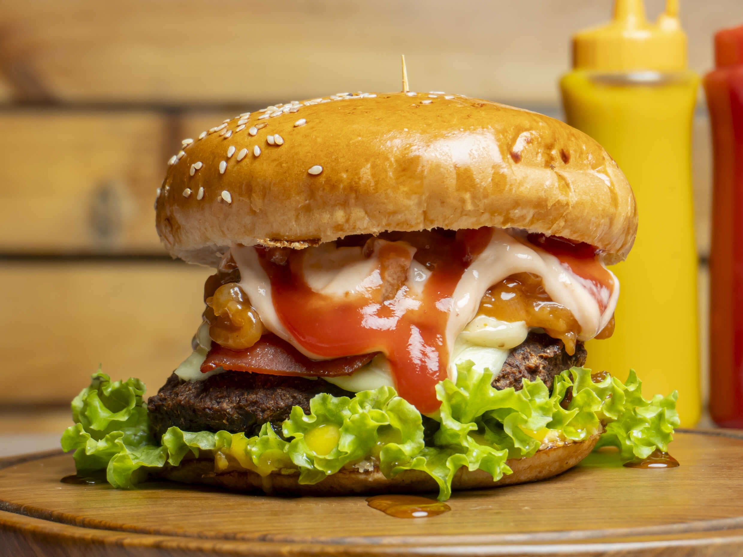 Deliciosa hamburguesa de la casa, con la receta tradicional. Viene con: carne, tocineta, triple queso, cebolla, lechuga, tomate y salsa de la casa.