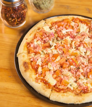 Tamaño personal 6 porciones. Ingredientes: pollo, tomate y tocineta. Tamaño a elección.