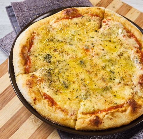 Tamaño personal 6 porciones. Ingredientes: cuatro quesos de mozzarella, azul, parmesano y holandés.
