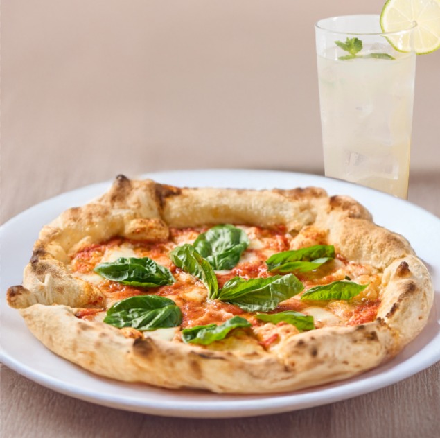 4 porciones de Pizza con Salsa pomodoro, mozzarella bocconcini di búfala, albahaca y aceite de oliva extra virgen + limonada natural
