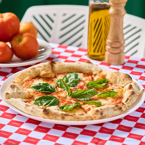Salsa pomodoro, mozzarella bocconcini di búfala, albahaca y aceite de oliva extra virgen.