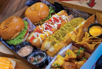4 perros americanos (con salsas y toppings de la casa variados) + 1 porción de nachos con cheddar + 1 porción de papas criollas