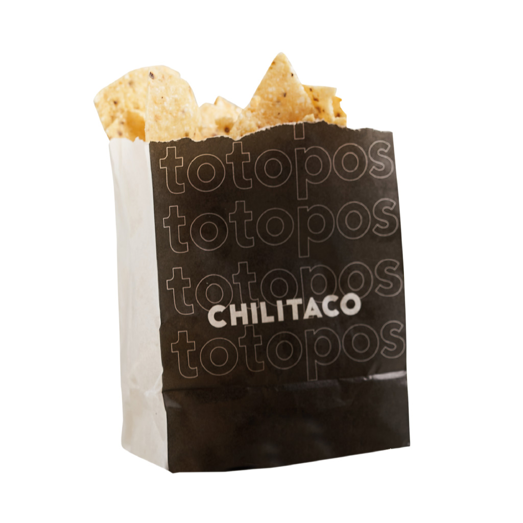 Totopos de maíz (90grs) con proteína, bases, toppings y salsas a elección acompañados de totopos con salsa o guacamole o postre y bebida.