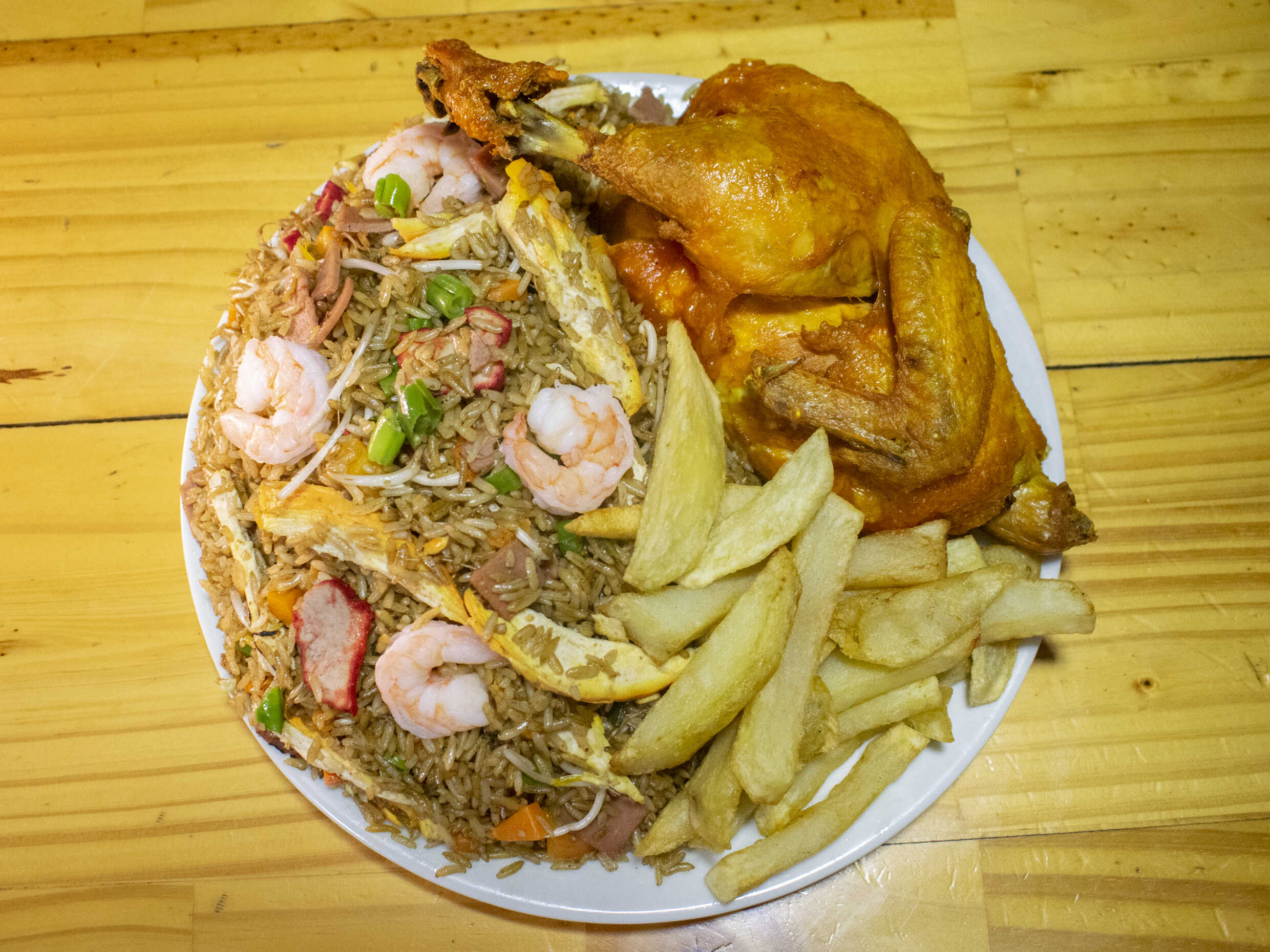 Arro chino mixto (Pollo, cerdo, jamón, camarón y verduras)