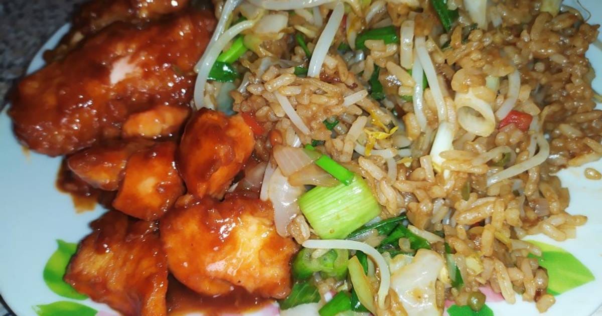 Arroz Chino Personal+Trocitos de PolloalaNaranja