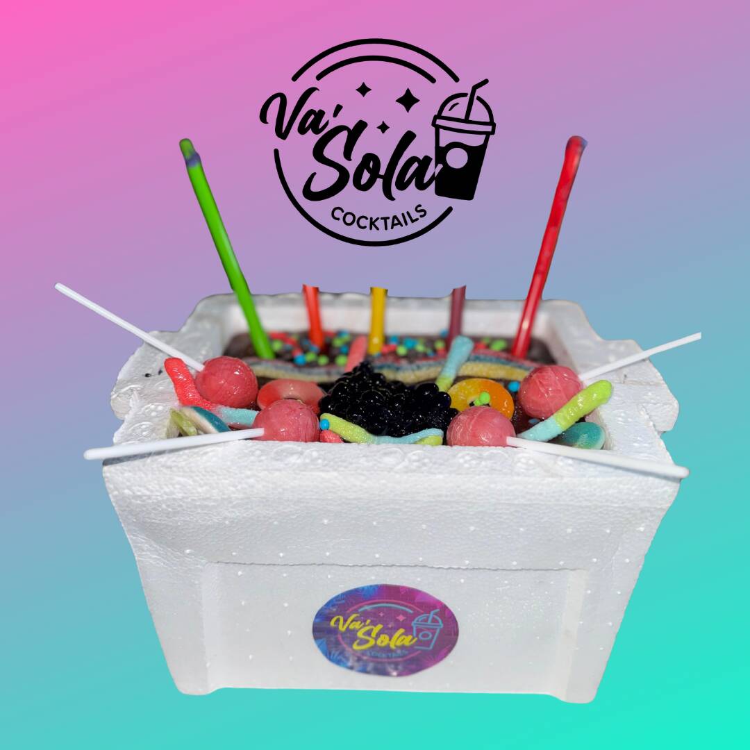 Champagne, Vodka, Tequila, Granadina, Gomitas y Bombom