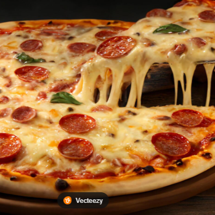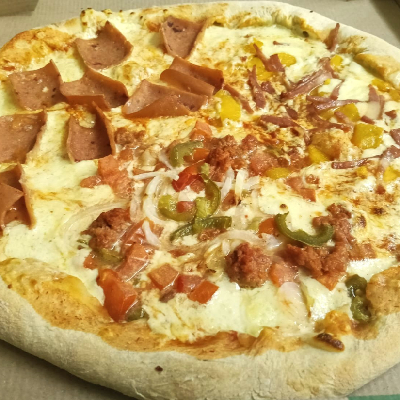 pizza personal 35cm de diametro 10 porciones super estofada ( es una pizza rellena y encima una una capa de queso mozarela)