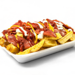 Papa, Salchicha, Ripio De Papa, Queso, Salsas