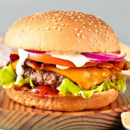 pan, lechuga, tomate, cebolla, carne, jamón, tocineta, queso, ripio, salsas