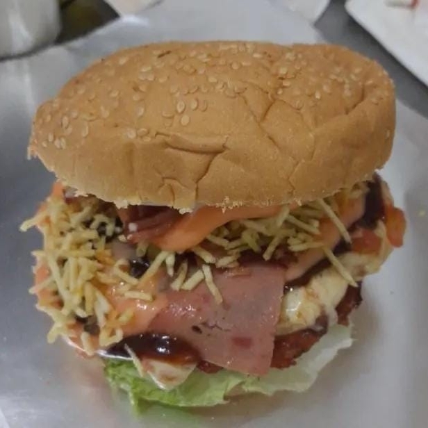 Pan crujiente, Lechuga, Jamón, Pollo Desmechado, tocineta, Queso Mozzarella, salsas, ripio de papa