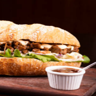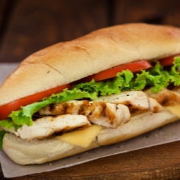 Pan Crujiente, jamón, pollo desmechado, lechuga, queso, salsa