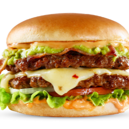 pan, doble lechuga, doble tomate, cebolla, doble carne, queso, ripio y salsas