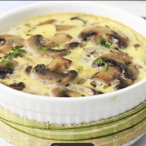 champiñones al ajillo, acompañado de queso mozarela gratinado