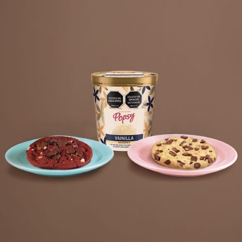 6 galletas cookie jaar medianas y 1 litro de helado popsy a elección.