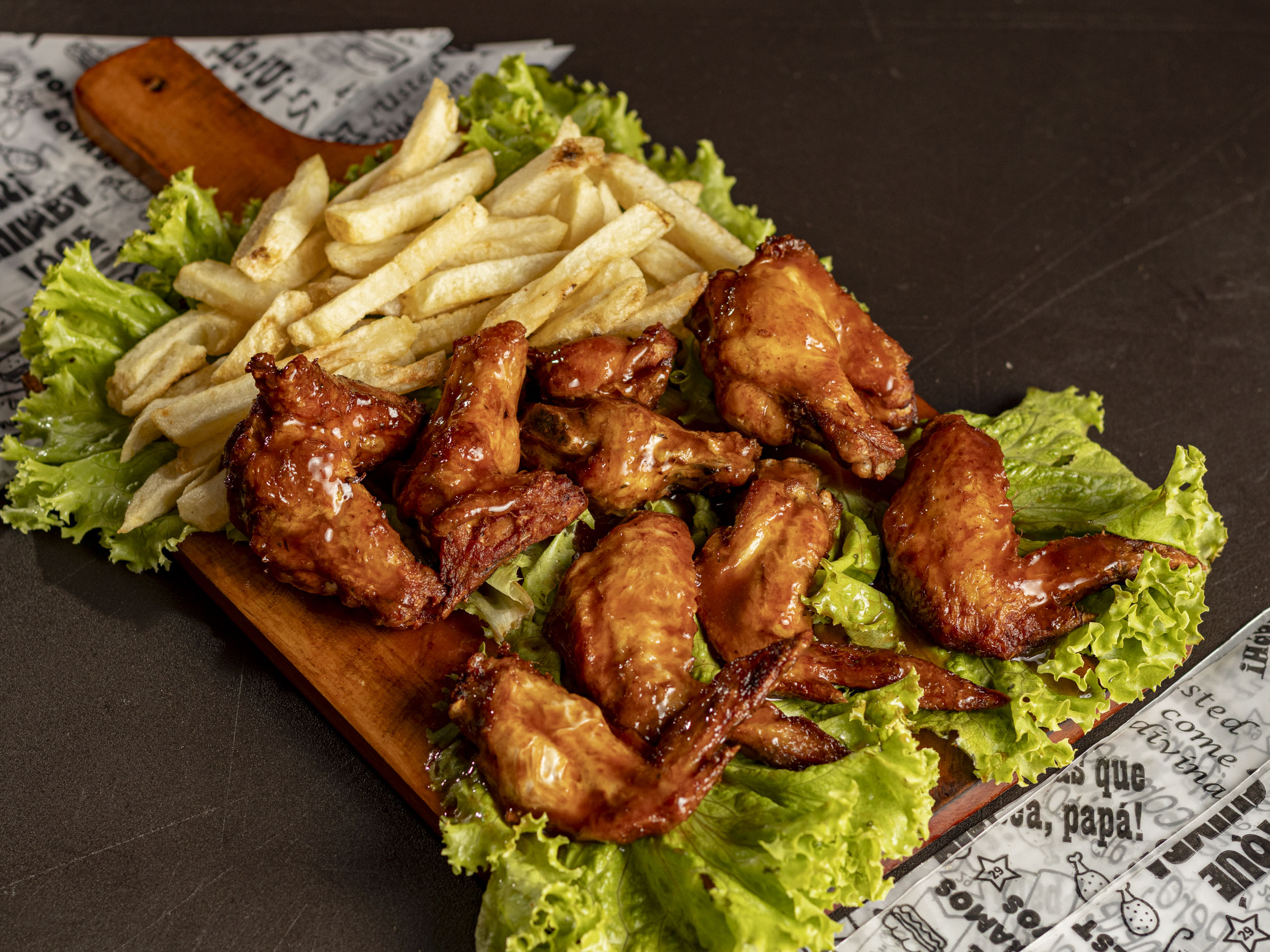 Alitas en Salsa BBQ Para 2 Pers (16 Piezas) + Papas a la francesa