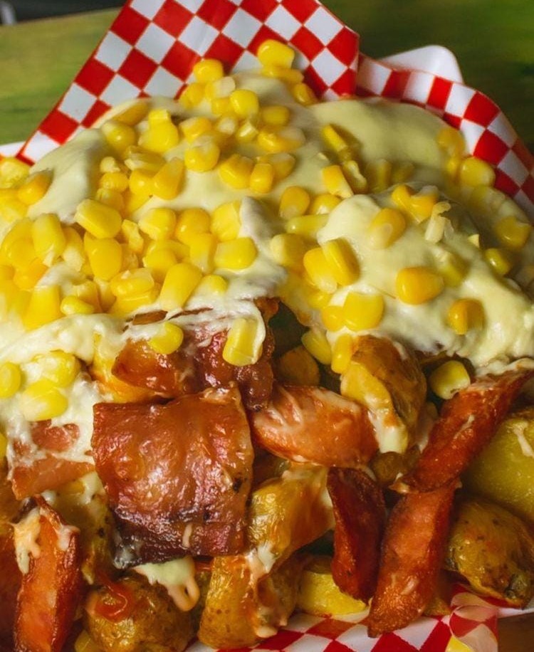 Papa Amarilla - Salchicha Llanera - Tocineta - Maiz Tierno - Queso Gratinado