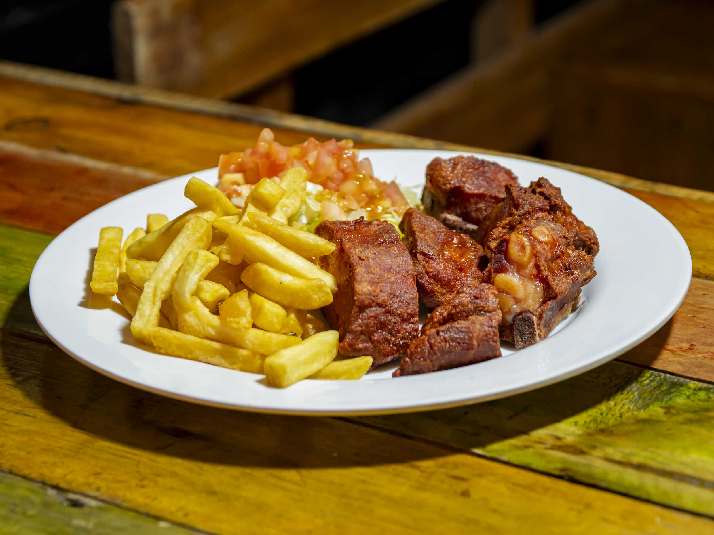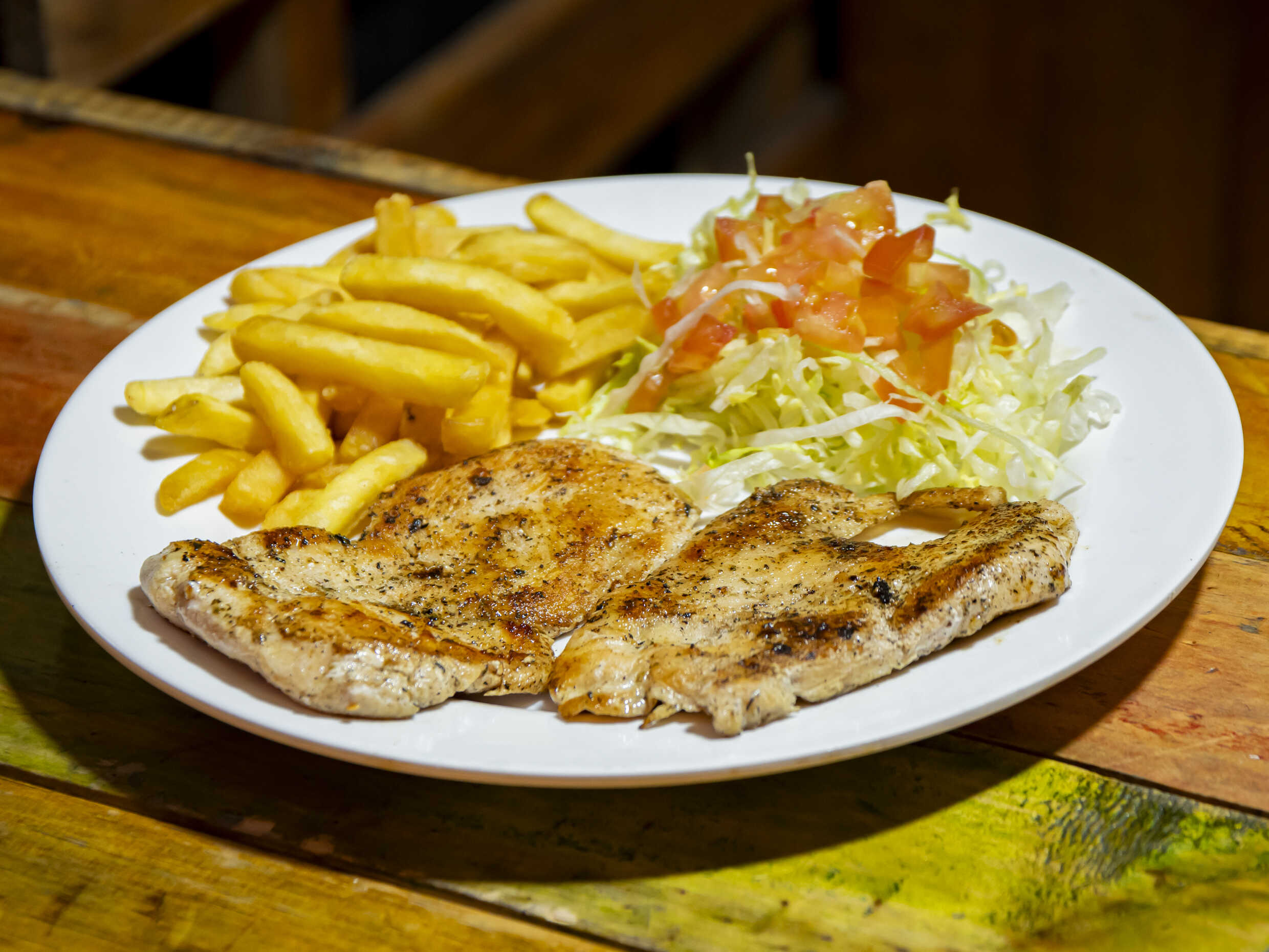 220 g de carne, ensalada y papa francesa.