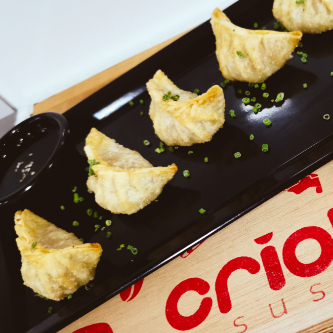 Empanada japonesa frita, rellena de cerdo, repollo y jengibre. 5 unidades