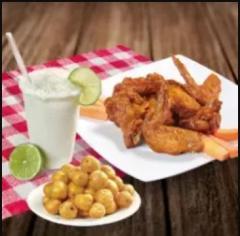 4 presas de pollo, 2 papas, 2 arepas, y litron