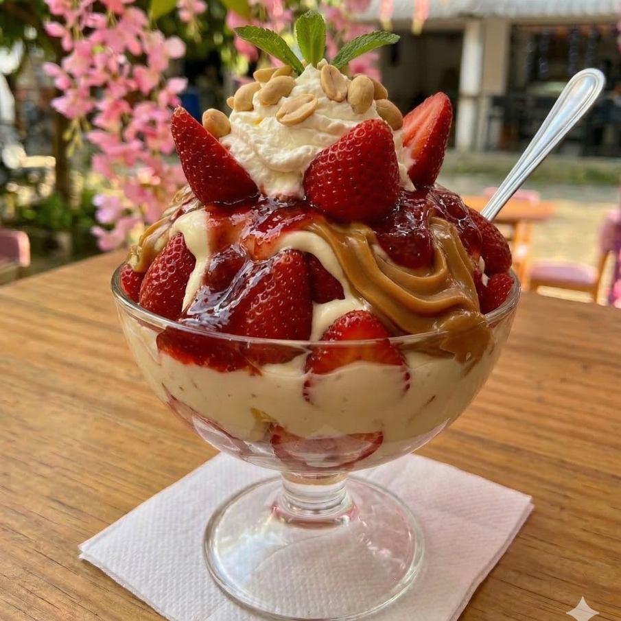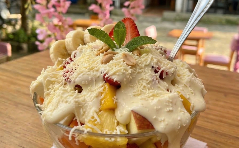 Deliciosa ensalada de frutas acompañada de mango, papaya, banano, fresa, manzana, kiwi, piña, leche condensada,crema de leche, 3 bola de helado a eleccion.