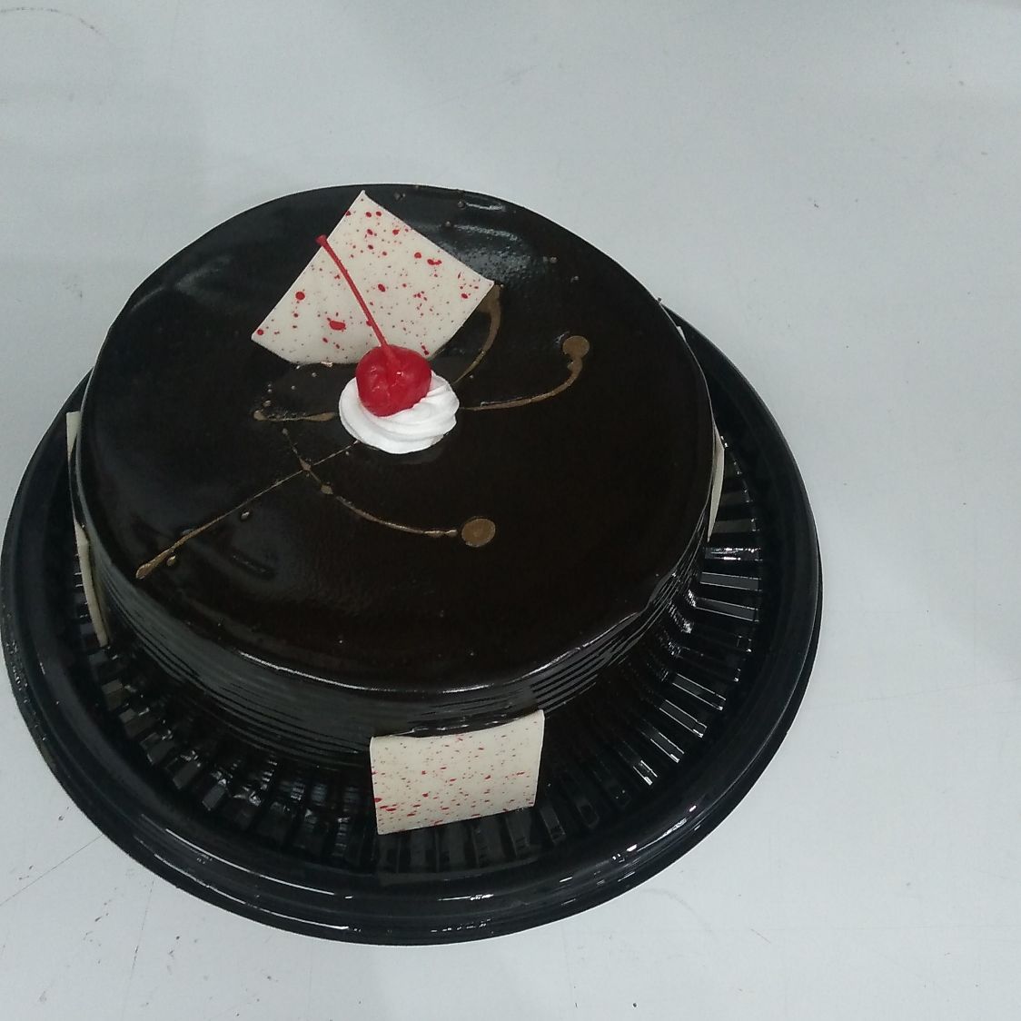 Torta de chocolate con una capa de arequipe en el medio, cubierta con crema sabor a chocolate, mas dulces en la parte superior: 18 a 20 porciones.