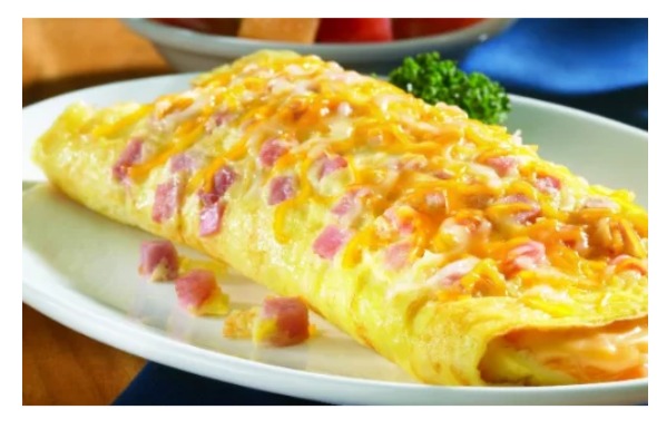 Omelette (huevos con jamón, queso y maicitos) + Bebida Caliente