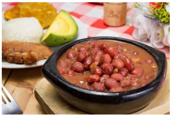 Delicioso almuerzo con frijolada en 16 onzas, chicharrón crujiente, porción de arroz, ensalada de la casa, tostada de plátano con un gramaje de 550 gr y limonada 250 ml.