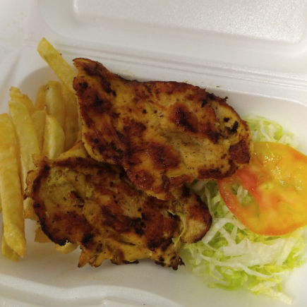 Papas fritas (amarilla o francesa según disponibilidad), 200 g de filete de pollo, ensalada de la casa.