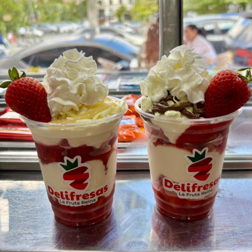 Combo en Super Promo con Dos Delicia de Oro 🍓🍓. Fresas frescas con crema de la casa y mermelada artesanal, deliciosa combinación de chocolate ferrero, maní, salsa de arequipe y nutella en vaso de 12 oz.