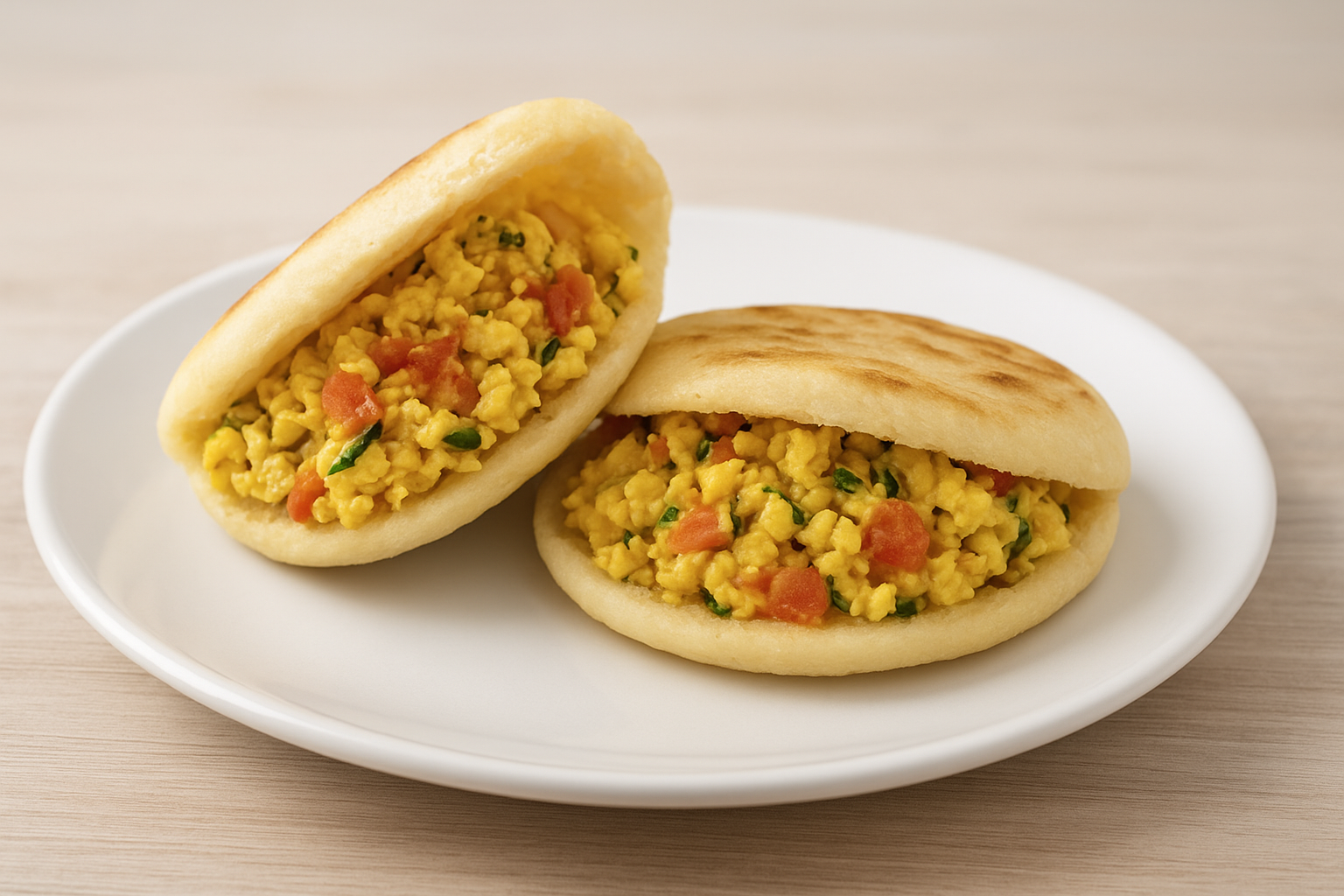 Deliciosos huevos pericos acompañados de una porcion de arroz, una arepa de las pequeñas y café. 8 onzas