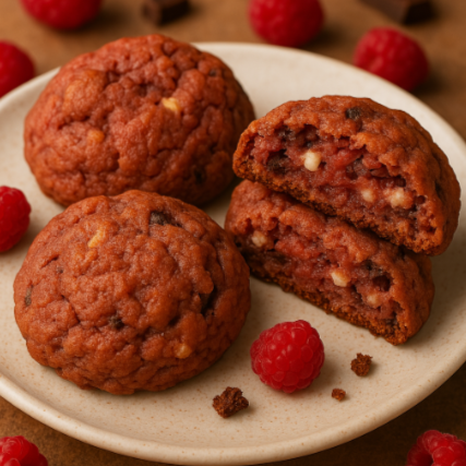 Una deliciosa masa de galleta con sabor a frambuesa, chips de chocolate blanco y chunks de chocolate negro ¡un contraste de sabores que te sorprenderá!