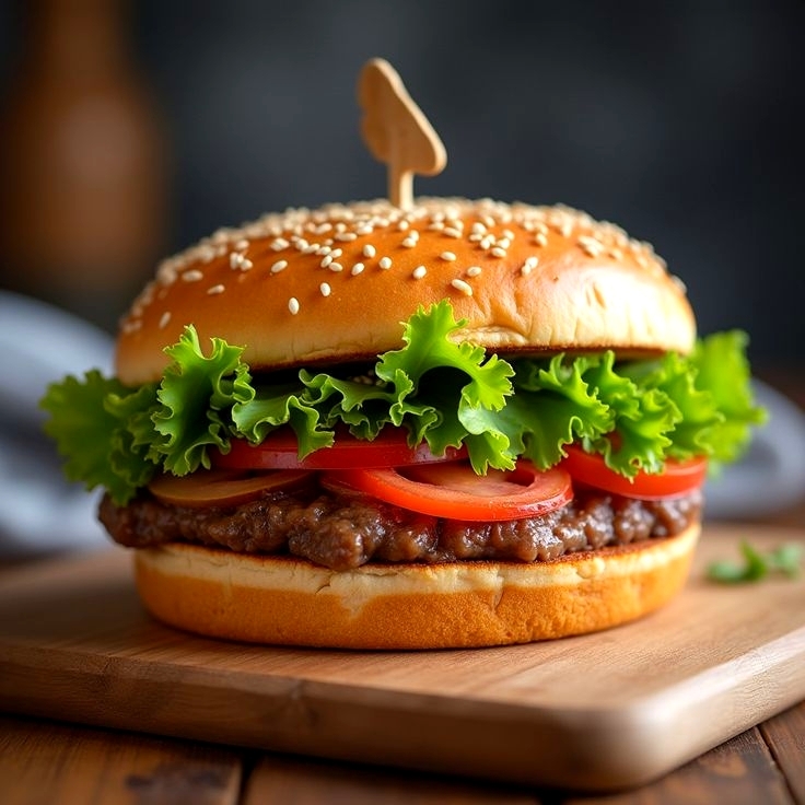Pan burger, lechuga, tomate, carne hamburguesa tipo Angus, ripio, cebolla caramelizada, queso, salsa de la casa, ripio y porción de papa.